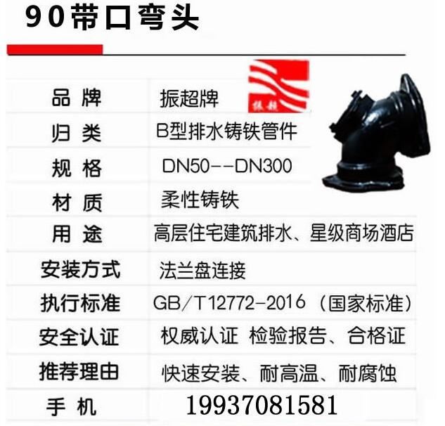 振超牌B型鑄鐵排水管件,柔性鑄鐵,法蘭盤鏈接,快速安裝,耐高溫,耐腐蝕;用于高層住宅建筑排水、星際商場(chǎng)酒店。