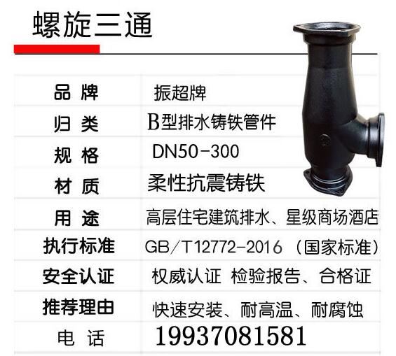 振超牌B型鑄鐵排水管件,柔性抗震鑄鐵,快速安裝,耐高溫,耐腐蝕;用于高層住宅建筑排水、星際商場酒店。