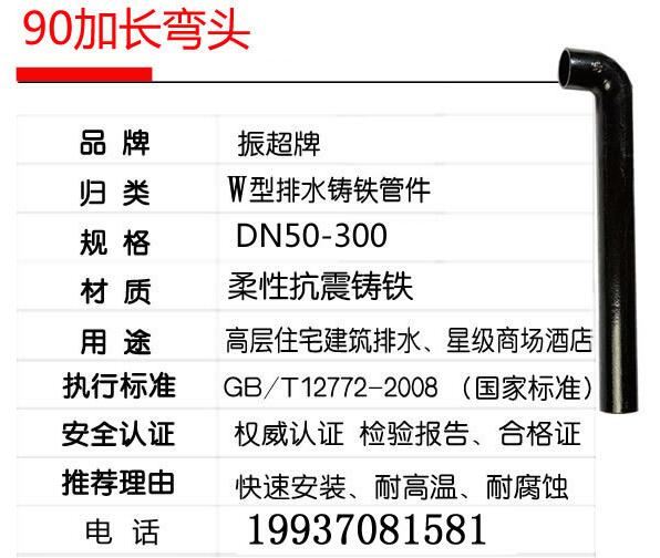 振超牌W型鑄鐵排水管件,柔性抗震鑄鐵,快速安裝,耐高溫,耐腐蝕;用于高層住宅建筑排水、星際商場酒店。