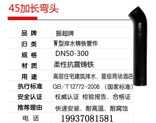 柔性機制鑄鐵管下水管件加長45度彎頭