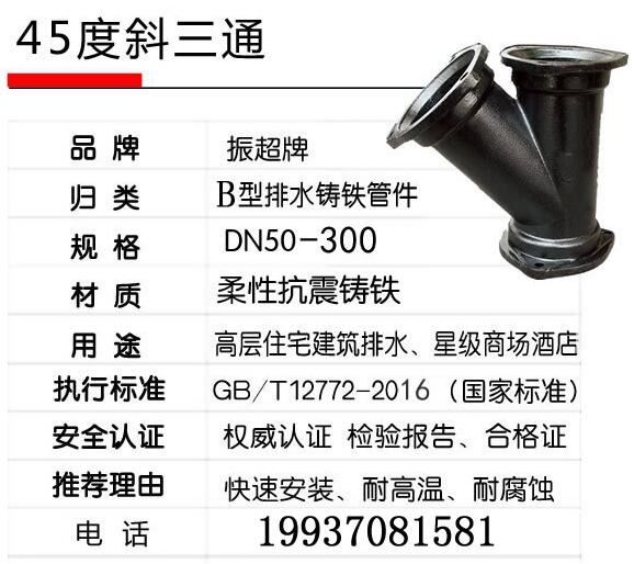 振超牌B型鑄鐵排水管件,柔性抗震鑄鐵,快速安裝,耐高溫,耐腐蝕;用于高層住宅建筑排水、星際商場酒店。