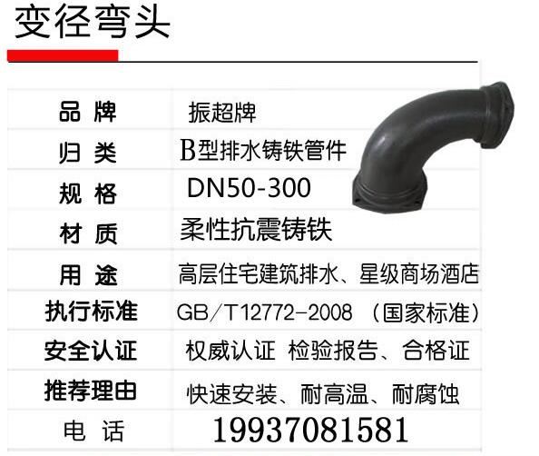 振超牌B型鑄鐵排水管件,柔性抗震鑄鐵,快速安裝,耐高溫,耐腐蝕;用于高層住宅建筑排水、星際商場(chǎng)酒店。