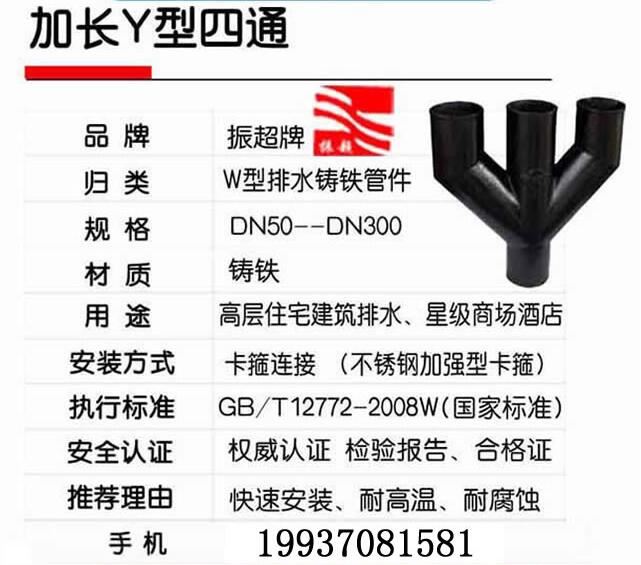 振超牌W型鑄鐵排水管件,柔性抗震鑄鐵,快速安裝,耐高溫,耐腐蝕;用于高層住宅建筑排水、星際商場酒店。