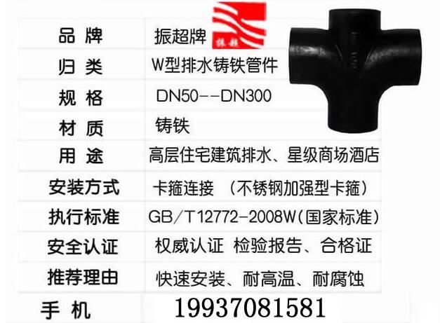 振超牌W型鑄鐵排水管件,柔性抗震鑄鐵,快速安裝,耐高溫,耐腐蝕;用于高層住宅建筑排水、星際商場(chǎng)酒店。