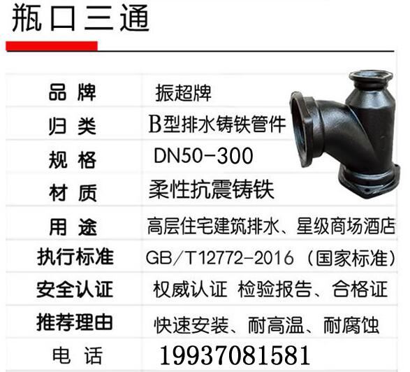 振超牌B型鑄鐵排水管件,柔性抗震鑄鐵,快速安裝,耐高溫,耐腐蝕;用于高層住宅建筑排水、星際商場(chǎng)酒店。